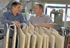 Firmeninhaber Jochen Brand (l.) und Geschäftsführer Joachim Hildebrandt im Zuschnitt. Foto: Andreas Döring